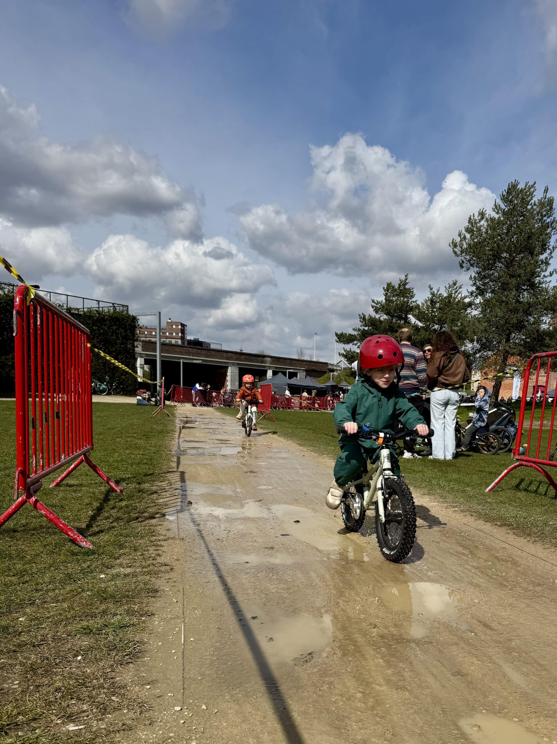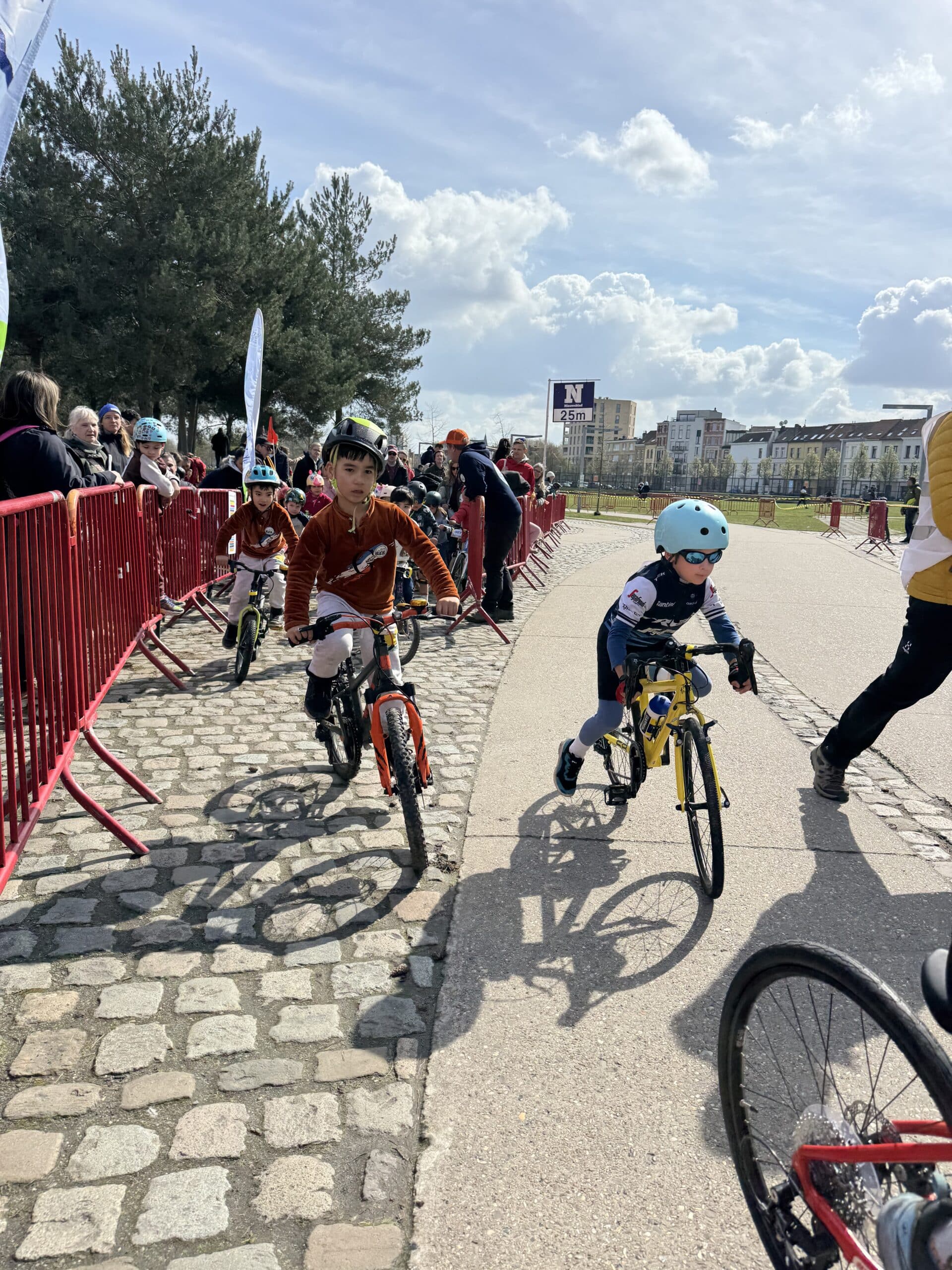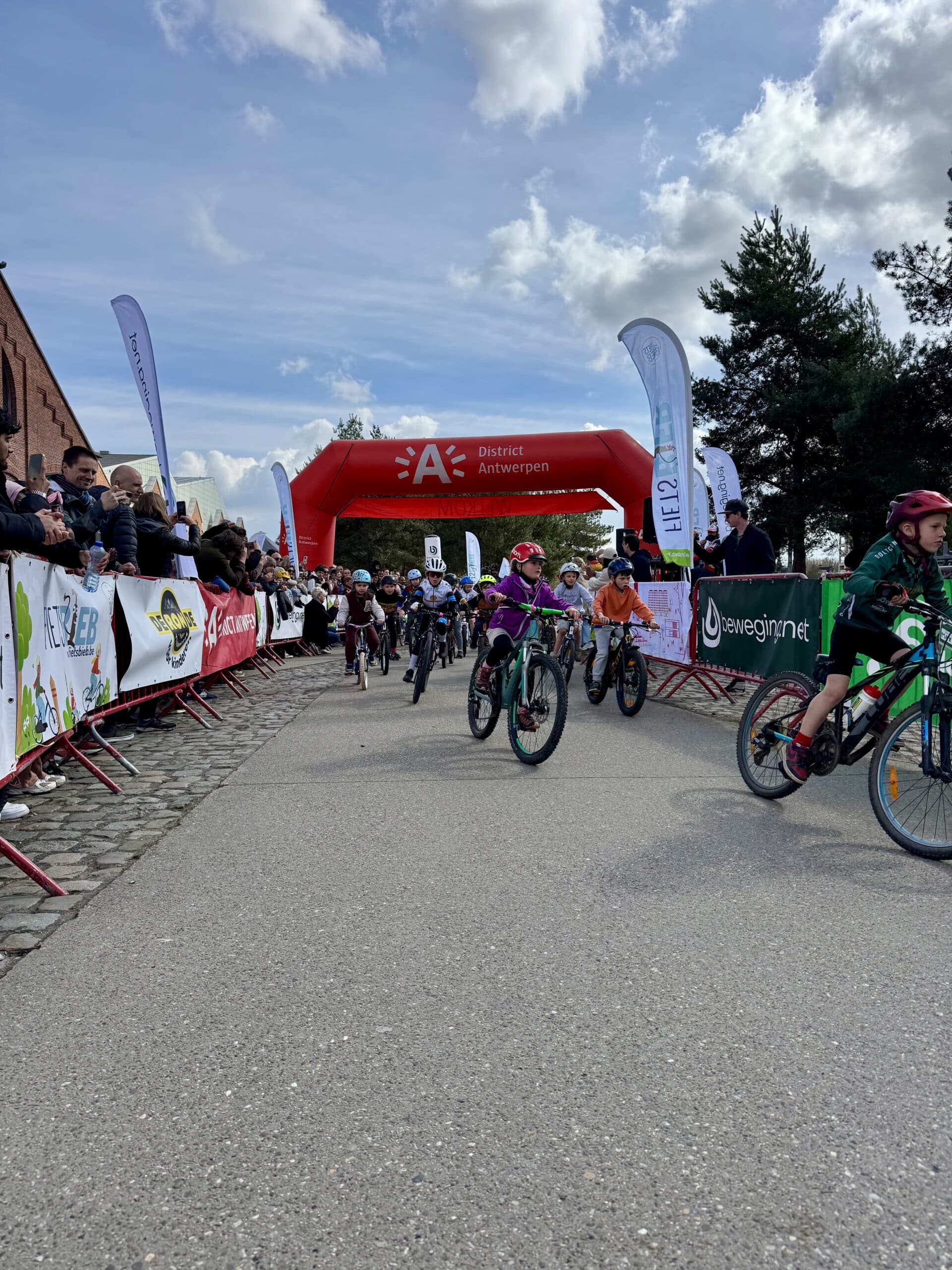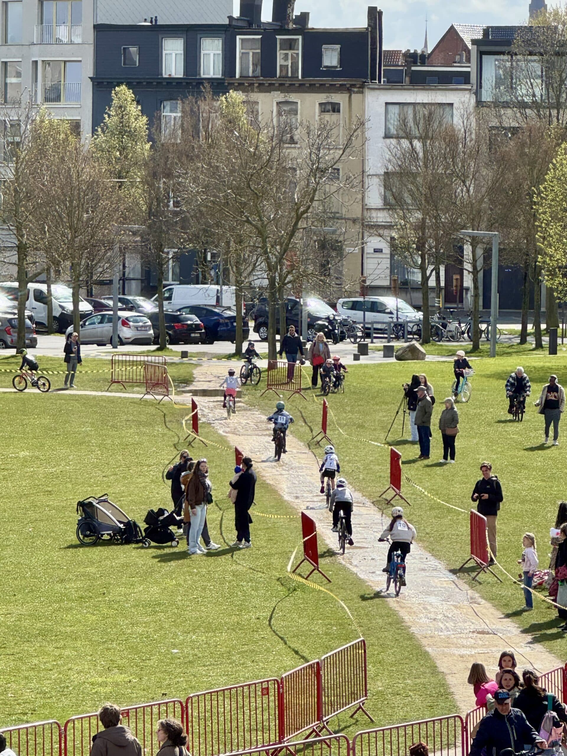Van bij de start om 13 uur zat de sfeer er meteen goed in. Park Spoor Noord baadde in de wielergekte en overal waren blije gezichten te zien. Kinderen tussen 2 en 12 jaar namen deel aan een twintigtal wedstrijdjes, telkens afgestemd op hun leeftijd. Voor de allerkleinsten was er een parcours van 250 meter, terwijl de oudere deelnemers zich konden uitleven op een omloop van 650 meter. En hoewel de Paterberg en Oude Kwaremont misschien ontbraken, zorgde een kasseistrook, een helling en een echte startboog voor een authentieke koerservaring.