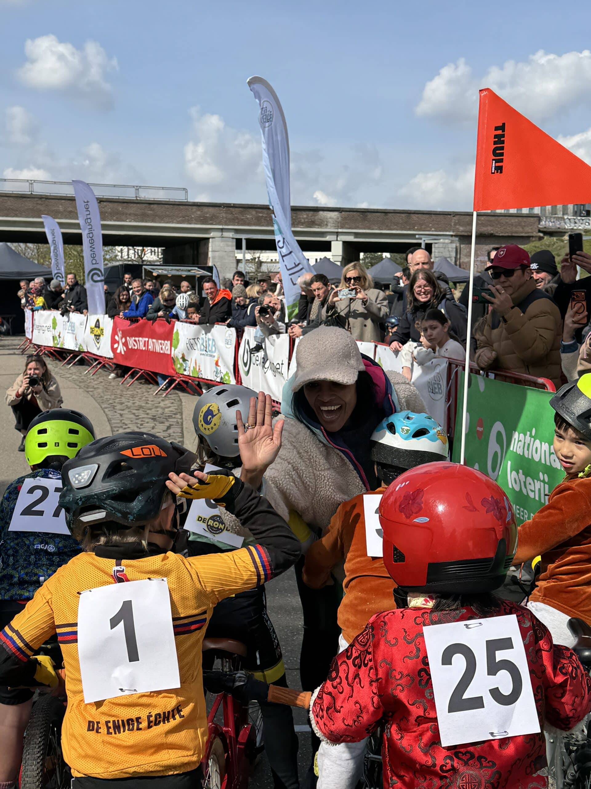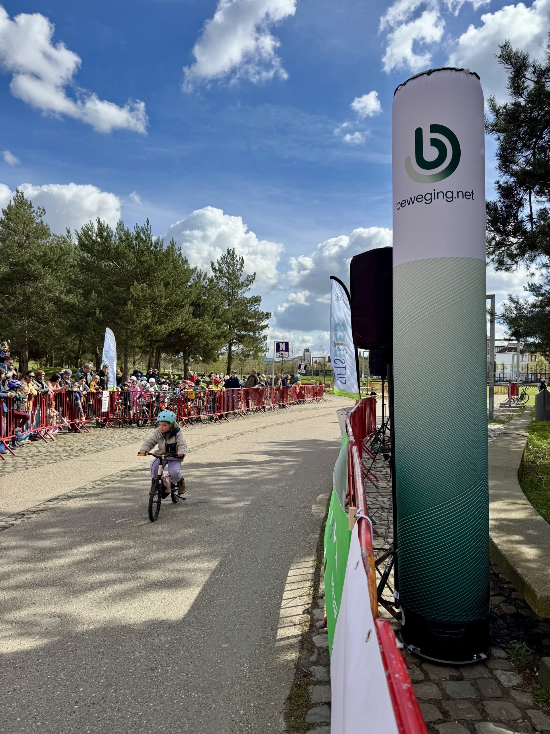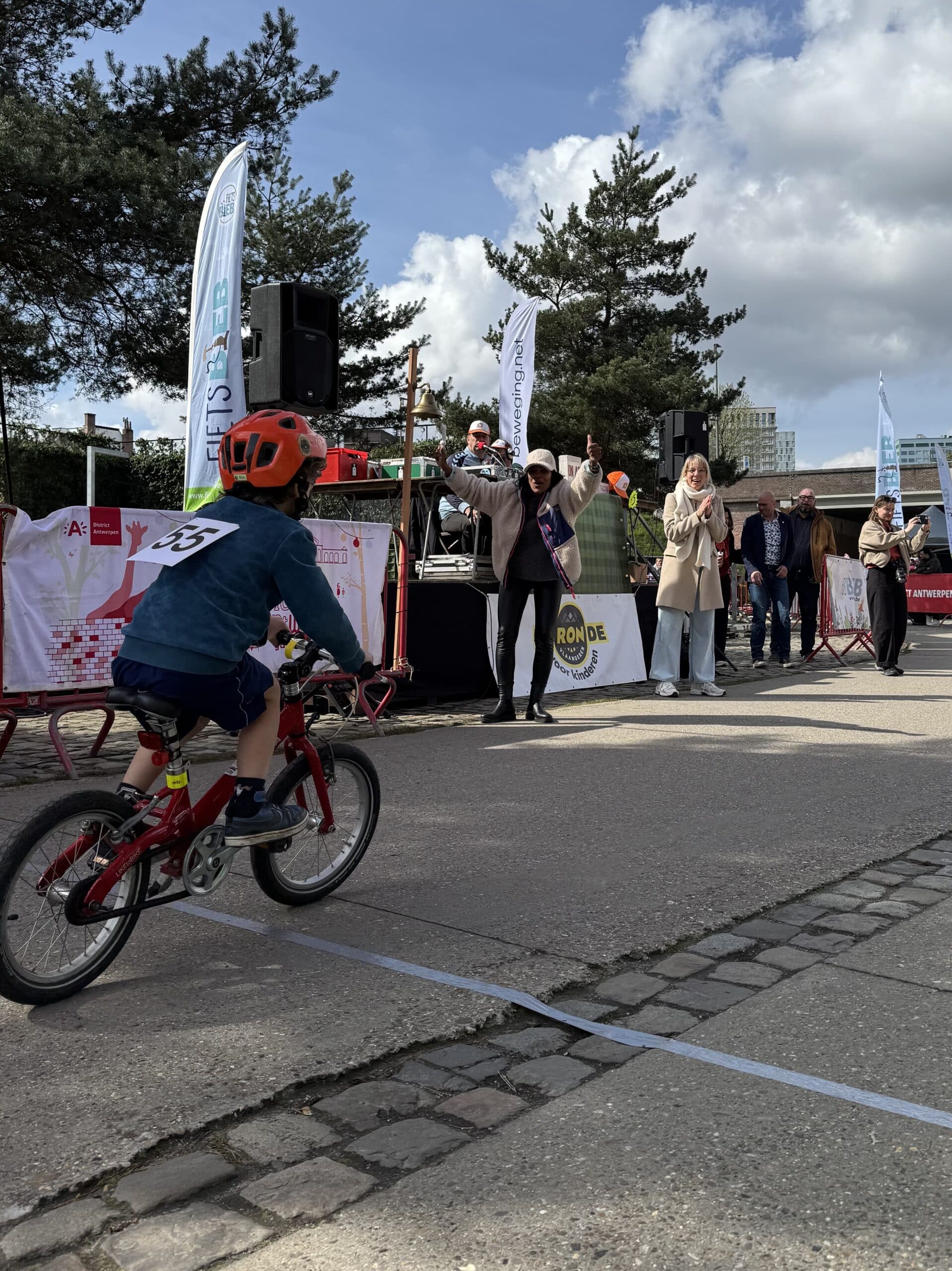 Van bij de start om 13 uur zat de sfeer er meteen goed in. Park Spoor Noord baadde in de wielergekte en overal waren blije gezichten te zien. Kinderen tussen 2 en 12 jaar namen deel aan een twintigtal wedstrijdjes, telkens afgestemd op hun leeftijd. Voor de allerkleinsten was er een parcours van 250 meter, terwijl de oudere deelnemers zich konden uitleven op een omloop van 650 meter. En hoewel de Paterberg en Oude Kwaremont misschien ontbraken, zorgde een kasseistrook, een helling en een echte startboog voor een authentieke koerservaring.