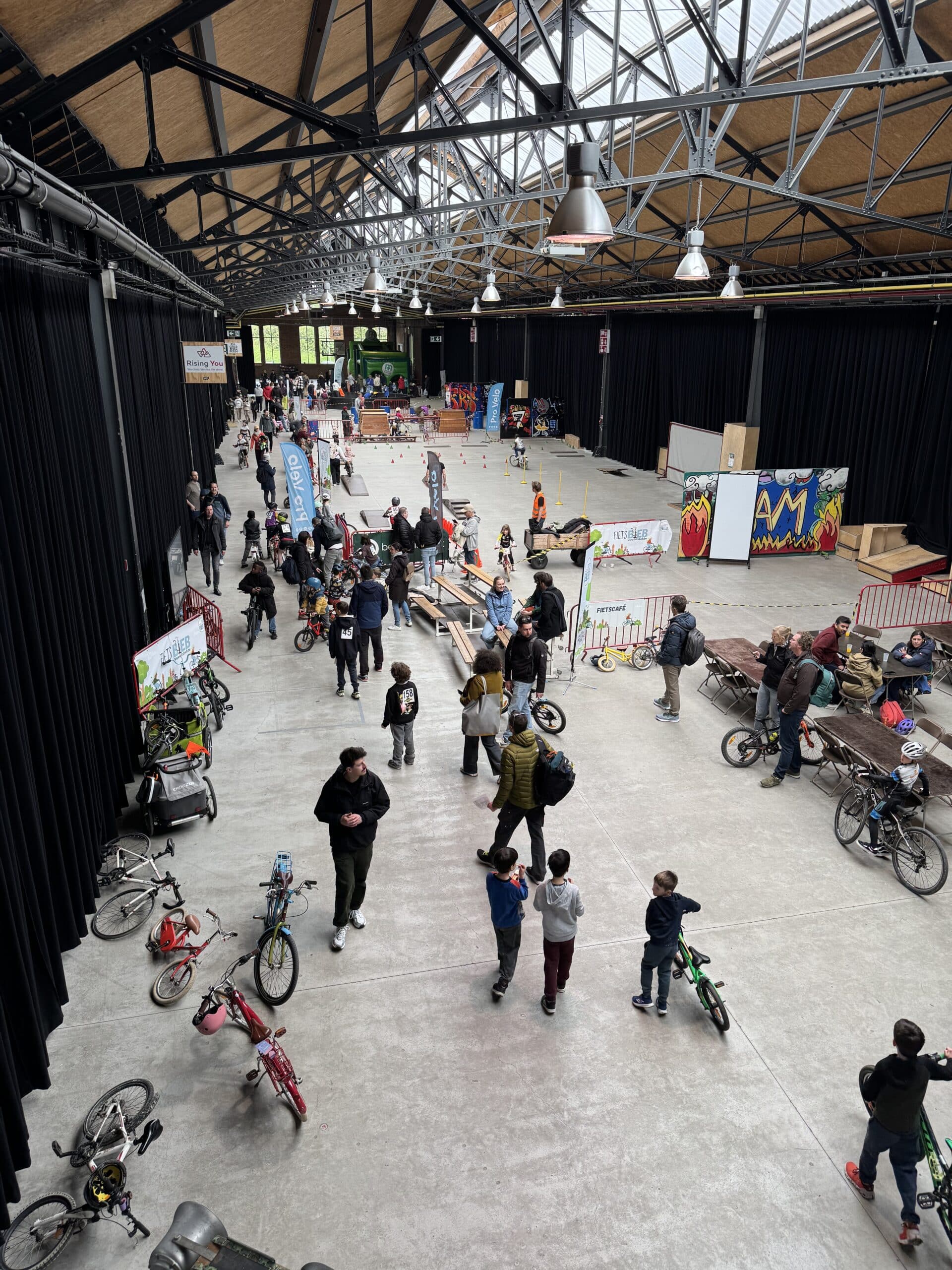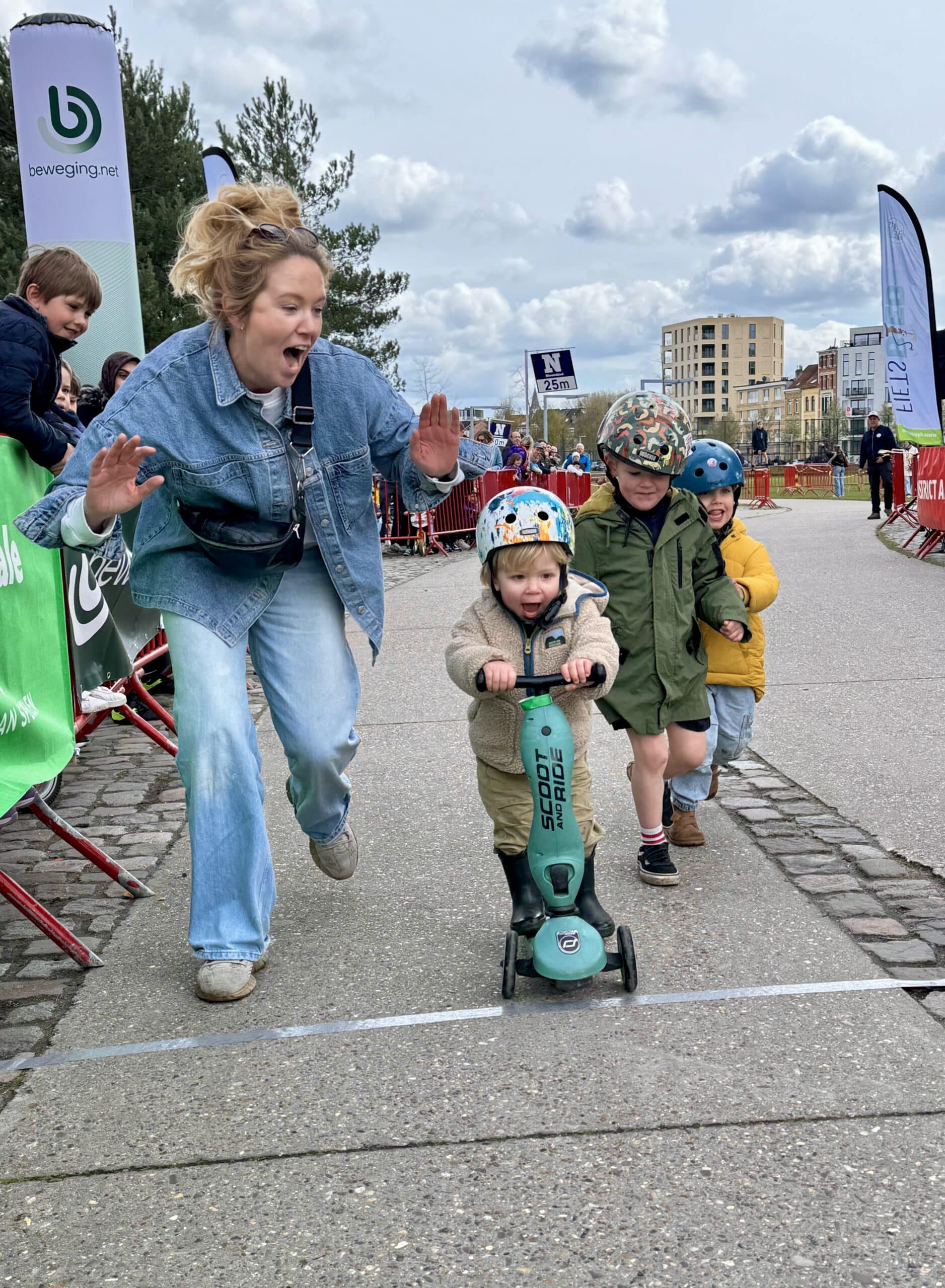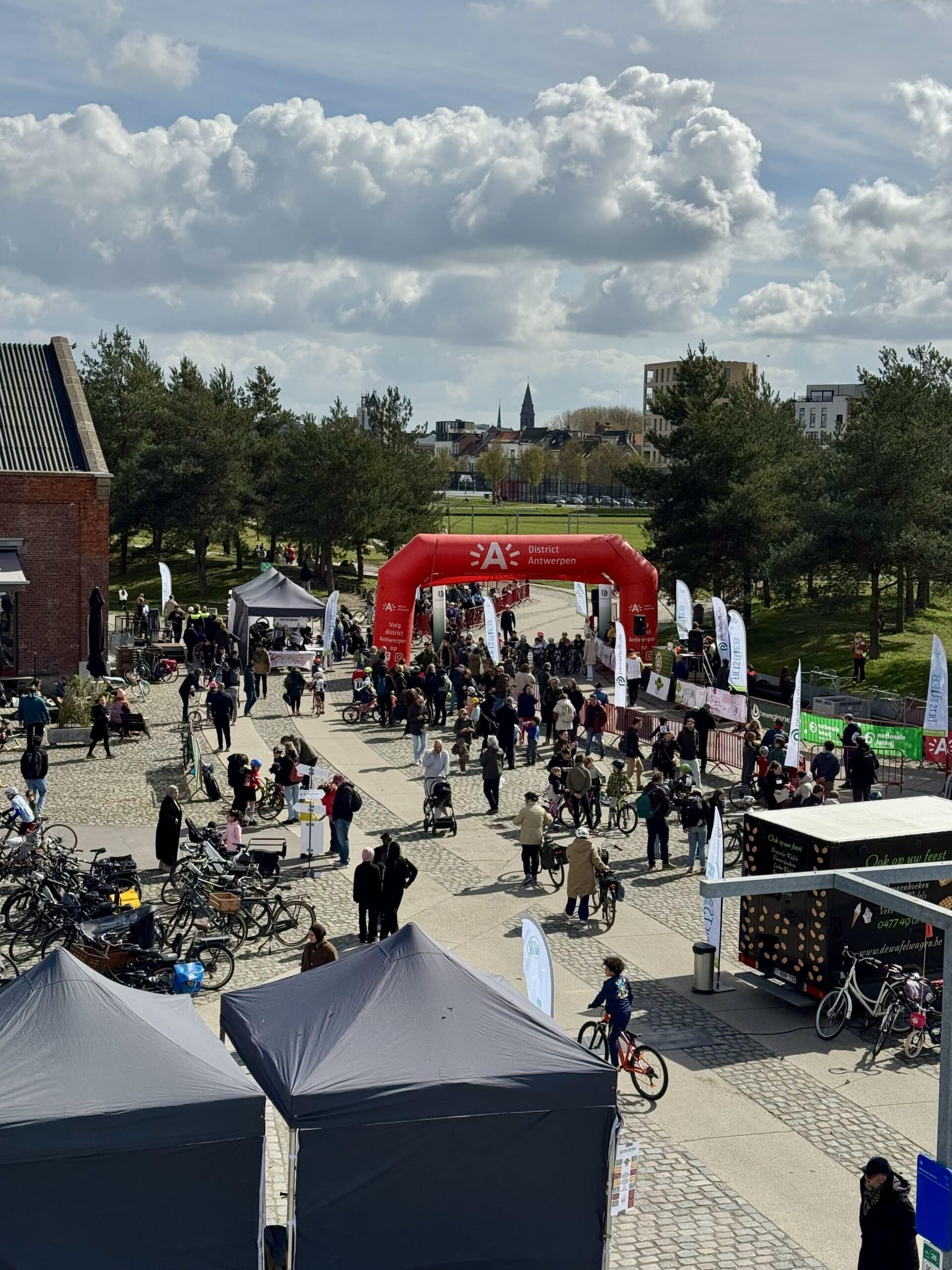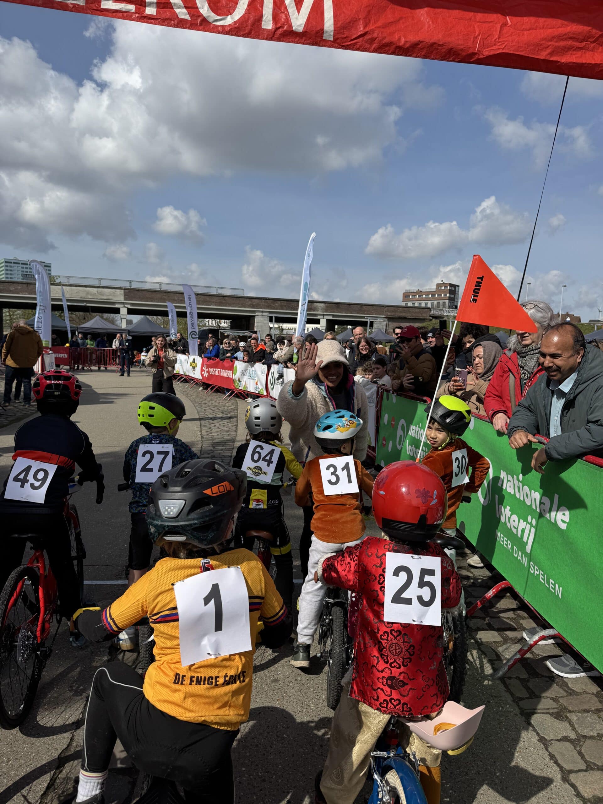 Van bij de start om 13 uur zat de sfeer er meteen goed in. Park Spoor Noord baadde in de wielergekte en overal waren blije gezichten te zien. Kinderen tussen 2 en 12 jaar namen deel aan een twintigtal wedstrijdjes, telkens afgestemd op hun leeftijd. Voor de allerkleinsten was er een parcours van 250 meter, terwijl de oudere deelnemers zich konden uitleven op een omloop van 650 meter. En hoewel de Paterberg en Oude Kwaremont misschien ontbraken, zorgde een kasseistrook, een helling en een echte startboog voor een authentieke koerservaring.